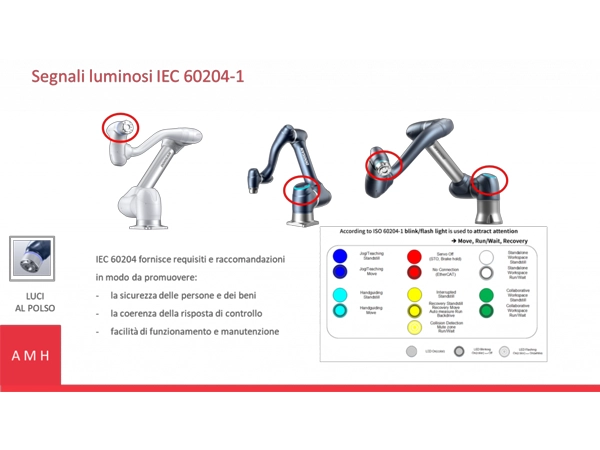 Tutti i cobot Doosan sono dotati di una luce LED sulla flangia (serie M) o sulla base (serie A), sia sulla flangia che sulla base (serie H)in grado di fornire rapidamente informazioni importanti sullo stato del cobot. Questo indica immediatamente se il cobot è in modalità collaborativa, standby, arresto di emergenza, recovery ecc.