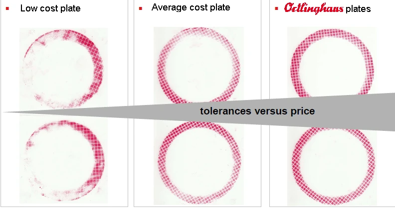 Come si può notare, i dischi di frizione a basso costo presentano una superficie di contatto che può essere inferiore anche del 50% rispetto alla superficie del disco. Nei dischi di alta qualità, invece, tale superficie di contatto si avvicina al 100%. Questo risultato può essere ottenuto solo grazie a tolleranze costruttive molto precise (come planarità e parallelismo delle facce dei dischi), che comportano un costo di produzione più elevato.